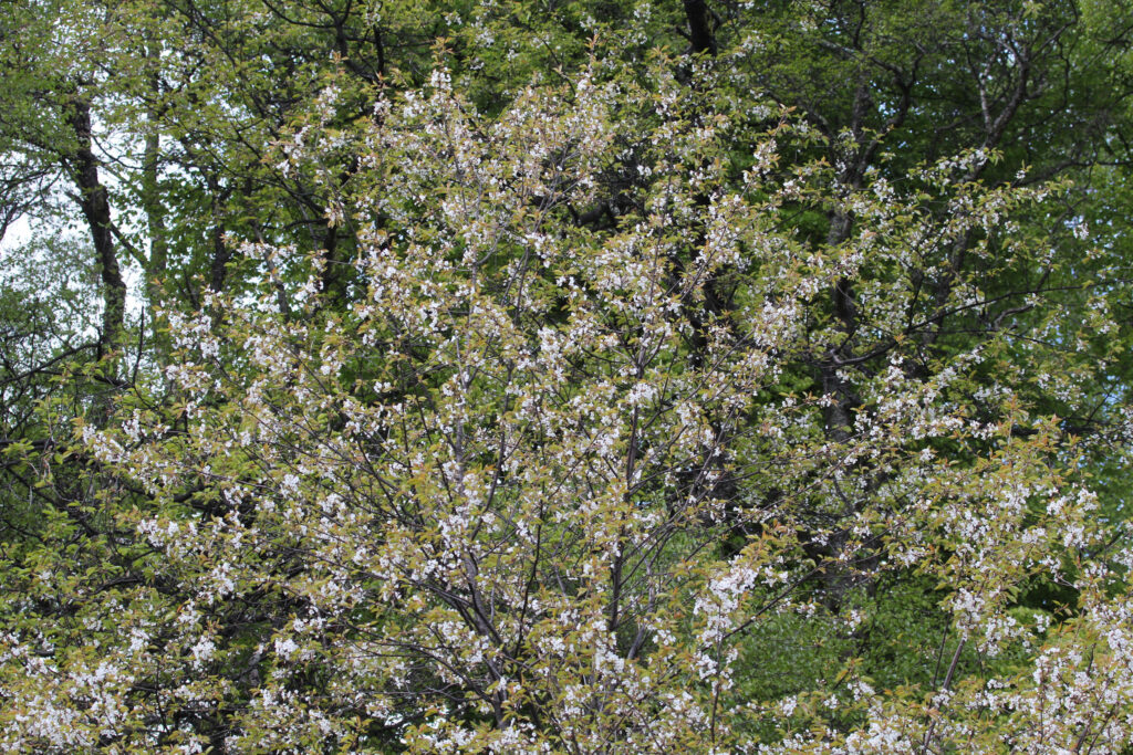 The wooded bankings along the sides of the former railway track provided a pleasing variety of bird life, identified by their calls and spring-time songs. Blackbirds and Woodpigeons were in song near the Dufftown station where the party set off and a pair of Jackdaws flew overhead. Blue Tits and Great Tits were feeding in the trees near the distillery, where a noisy Starling was feeding young, and the fairy bell notes of a Goldfinch came from a track-side tree A Garden Warbler poured out its “babbling brook”song from thick cover near a field edge then the first of many Willlow Warblers was heard from birches on the left of the track. Other trees included bird cherry, gean and hazel, ideal habitat for Blackcaps – a warbler with a loud and melodious song, usually produced from cover, a total of 10 being heard in the whole walk. Also widespread were Chaffinches, singing cheerily in the open tree canopy, but only one Chiffchaff was heard – in trees near the River Fiddich. A Dipper was bobbing on a riverside stone and a pair of Mallards fed in the clear Fiddich water as the party crossed the bridge. Both Song Thrush and Missel Thrush were seen on the last part of the walk and a Wren sang boldly from cover on a banking as the party completed an enjoyable walk at the Craigellachie car park.